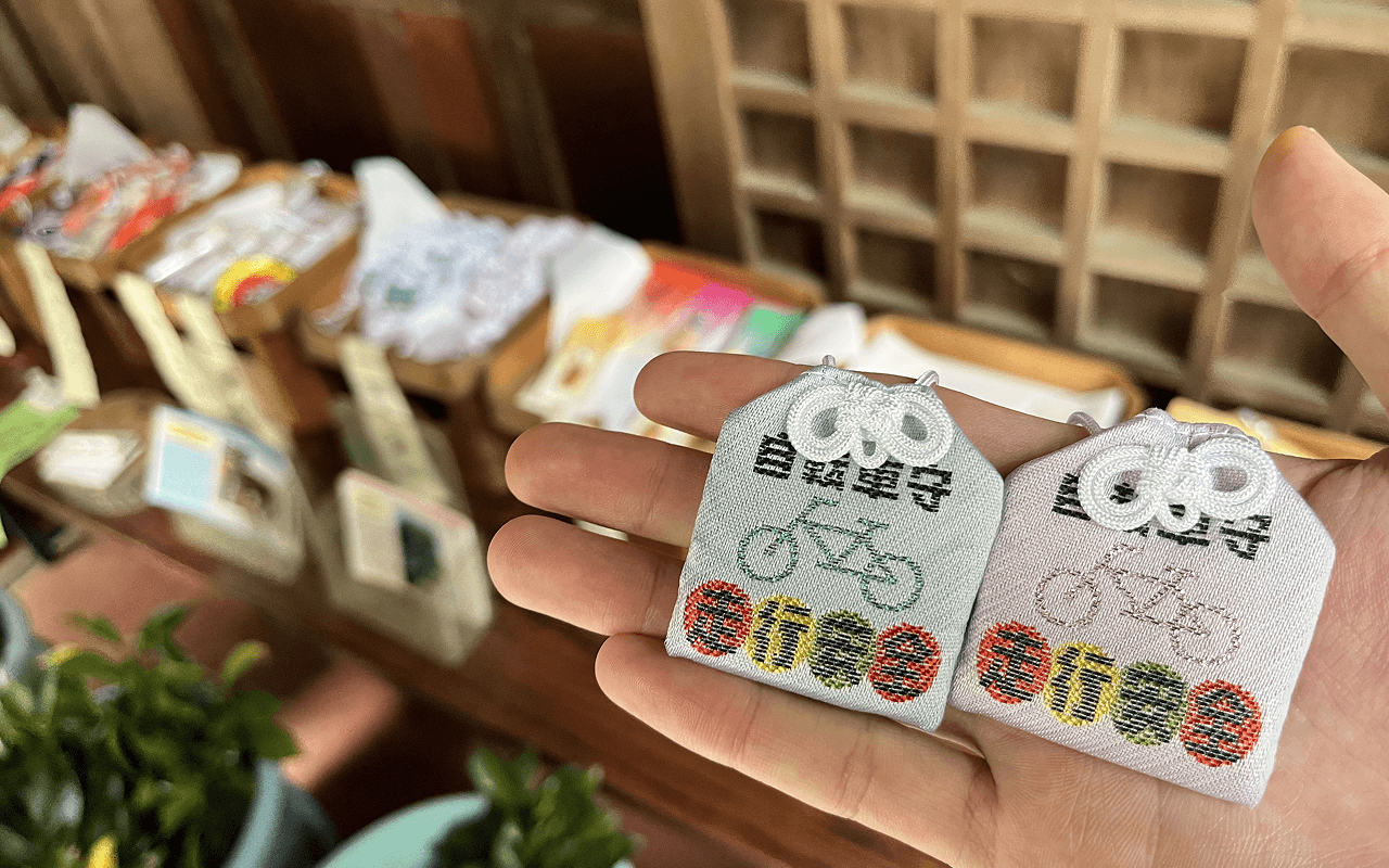 ほとんどのお客さんが御守りを受けられていてrideawayでも利用するお客様が安全に楽しいサイクリングができるように1体授かりました。