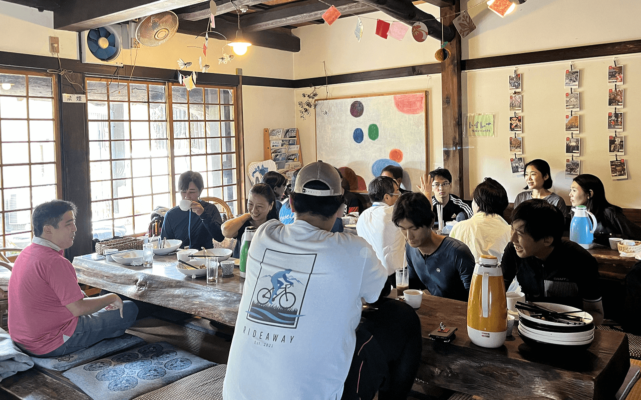 食事中は初めてツアーに参加してくれた中学生のD君と一緒にロードバイクの話で盛り上がったり、Oさんと「さいたまクリテリウム」という自転車レースの話や僕の高校時代のレース経験について語り合っていました!