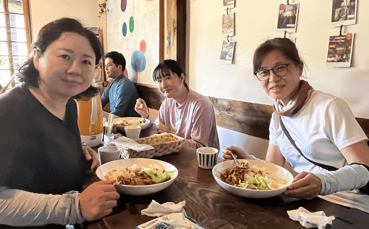 食事中は皆さん各々の会話で盛り上がっており、スタッフとロードバイク持ち込みの方がロードバイクの話で盛り上がっていたり、ツアー参加2回目の方がツアーの行き先を妄想したりしていました。