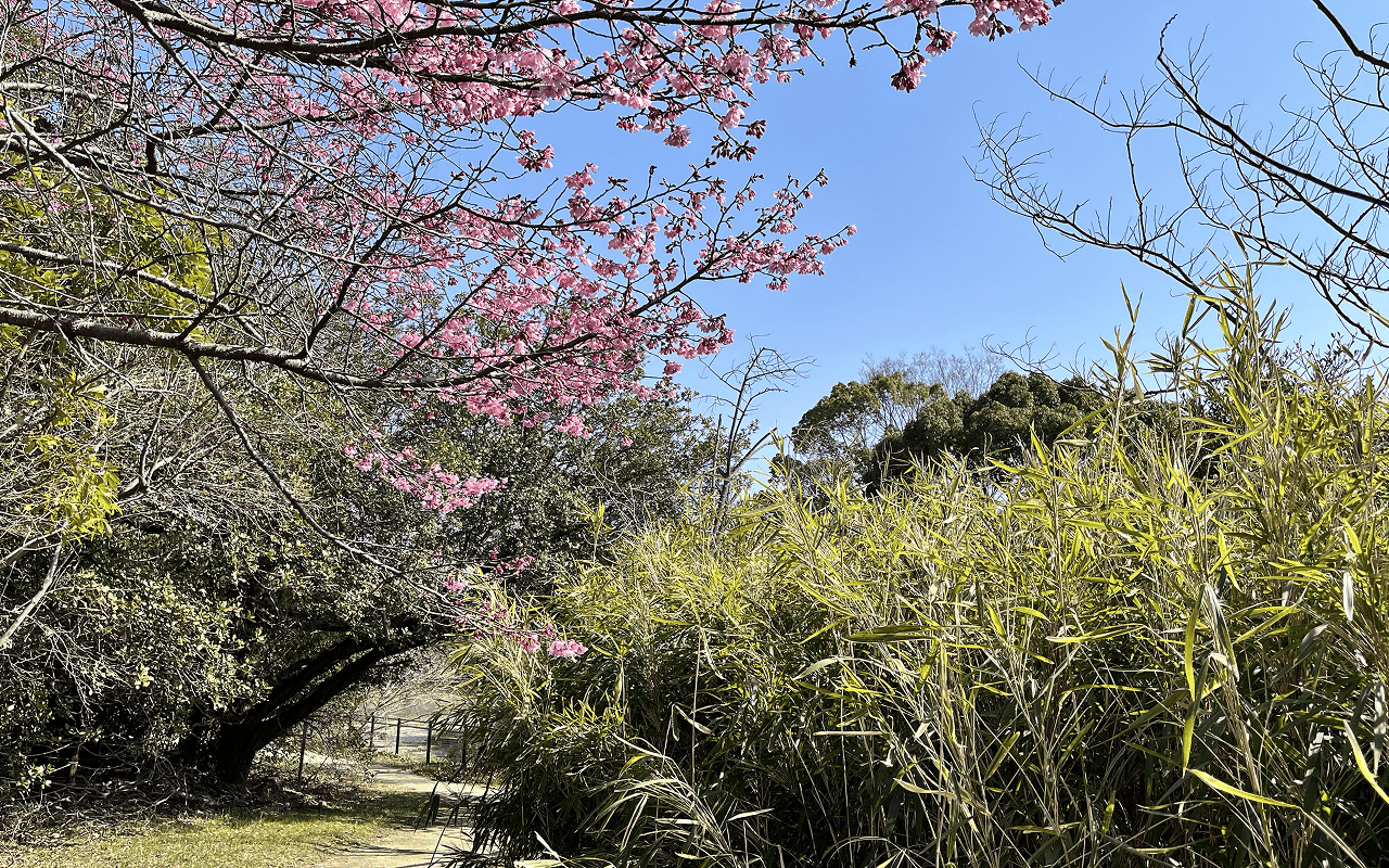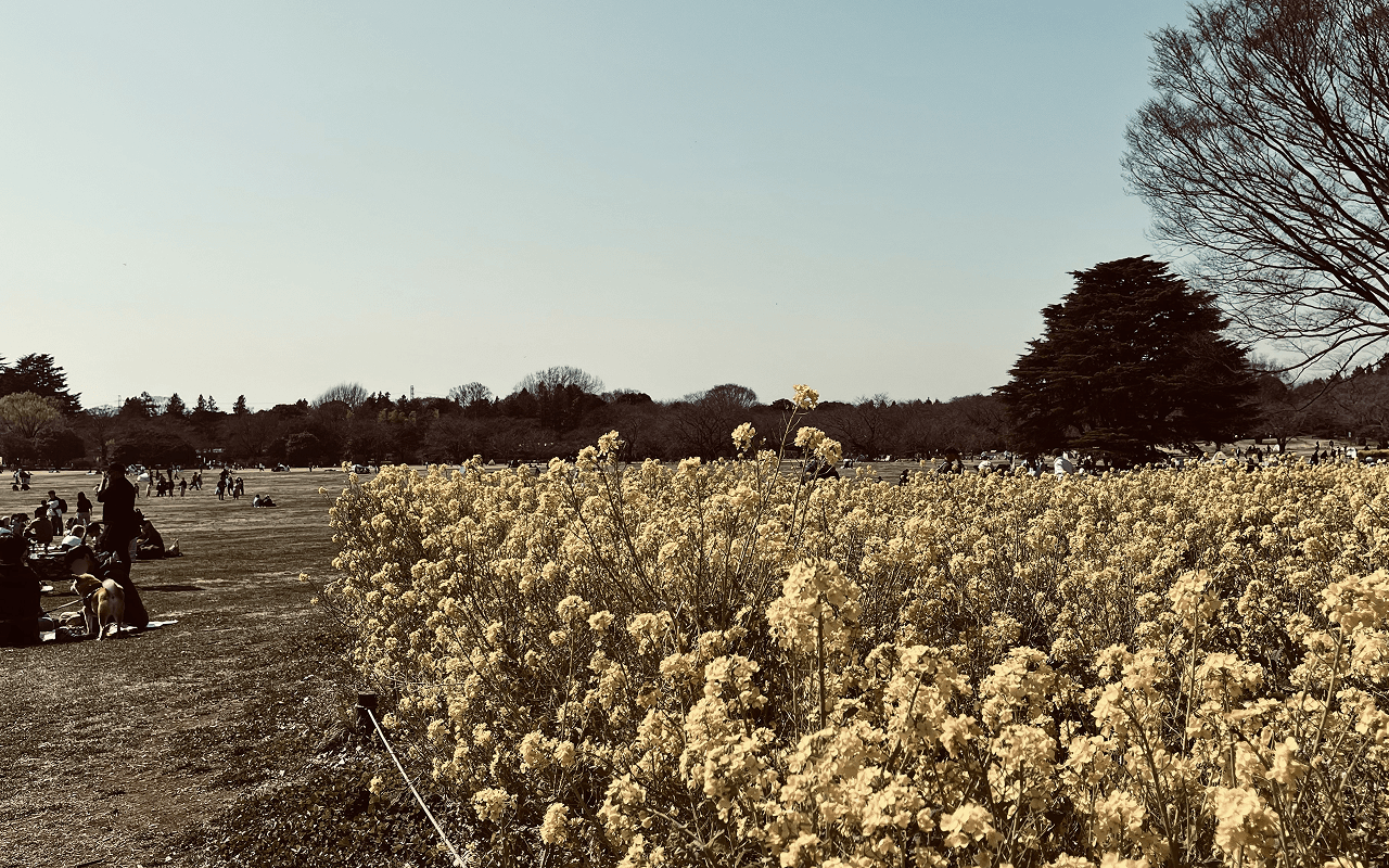 ごはんを食べた後は自由行動の時間を取りました。ツアー前日の3月20日から開催されていた「フラワーフェスティバル2026」では、ツアー当日は「ナノハナ」が開花中でした。また「みんなの原っぱ」から少し離れた場所には桜も綺麗に咲いていました。