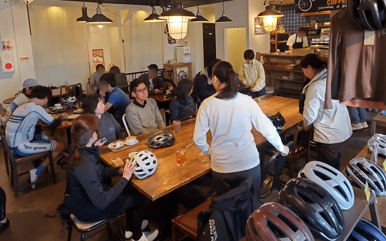 休憩中もMさんやTさんから「自転車は長く乗られているのですか?」と尋ねられたので「ロードバイクは中学2年生から乗っていますよ!」とお答えしたところ、お二人ともとても驚かれていました。そのあとも、高校時代の自転車レースの話やレンタルされた自転車の乗り味などの話で盛り上がりました。